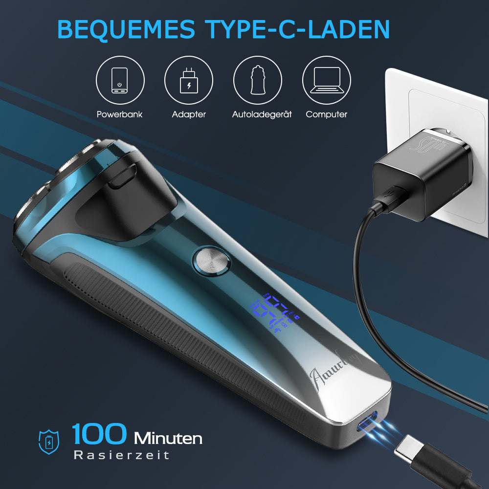 Amurhey FK373 Herrenrasierer Pro: Elektrischer Nass- und Trockenrasierer inkl. GRATIS Reiseetui