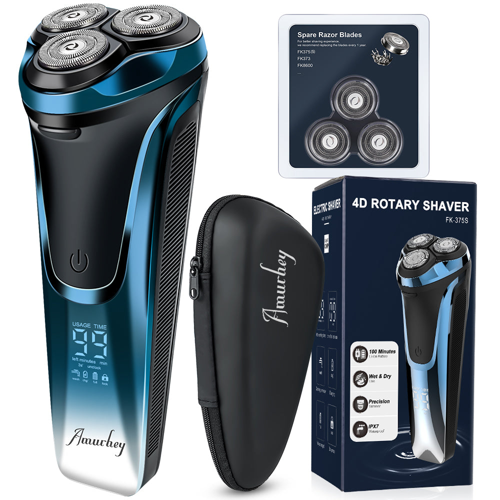 Amurhey FK375S Herrenrasierer Pro: Elektrischer Nass- und Trockenrasierer inkl. GRATIS Reiseetui & 3er Ersatzköpfen
