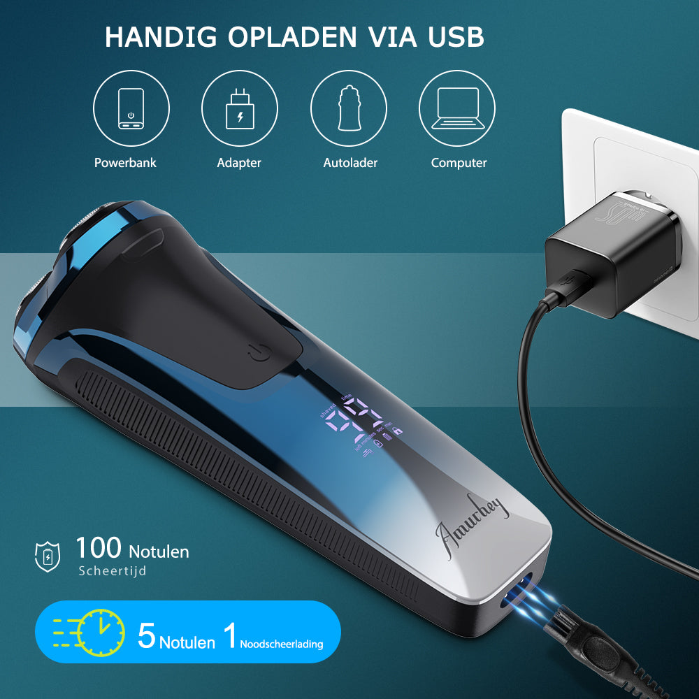 Sie können Ihren Rasierer jederzeit und überall aufladen, beispielsweise am Ladegerät, Computer, Powerbank, Autoladegerät usw.